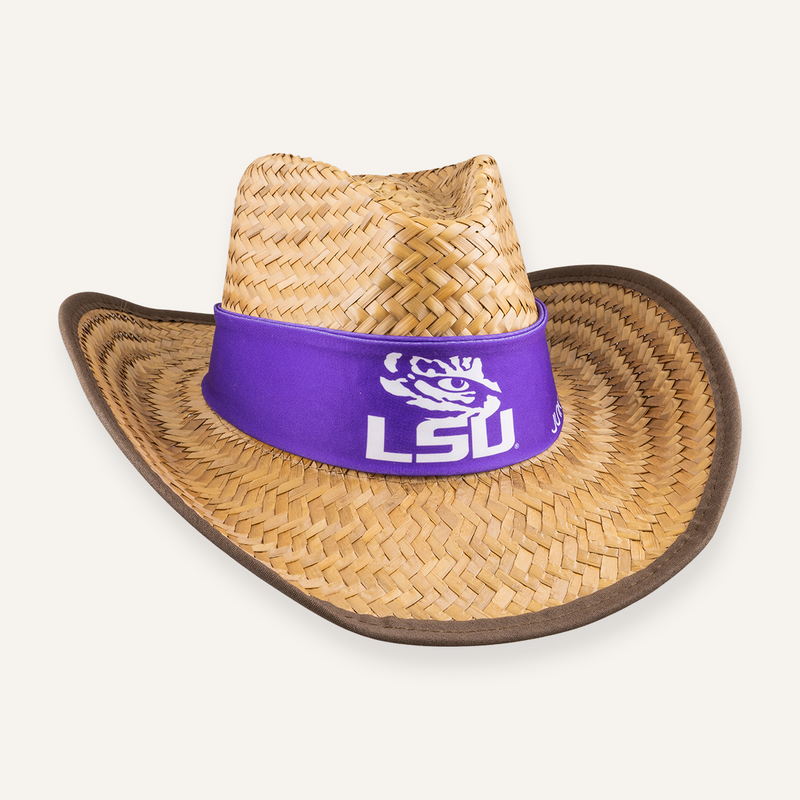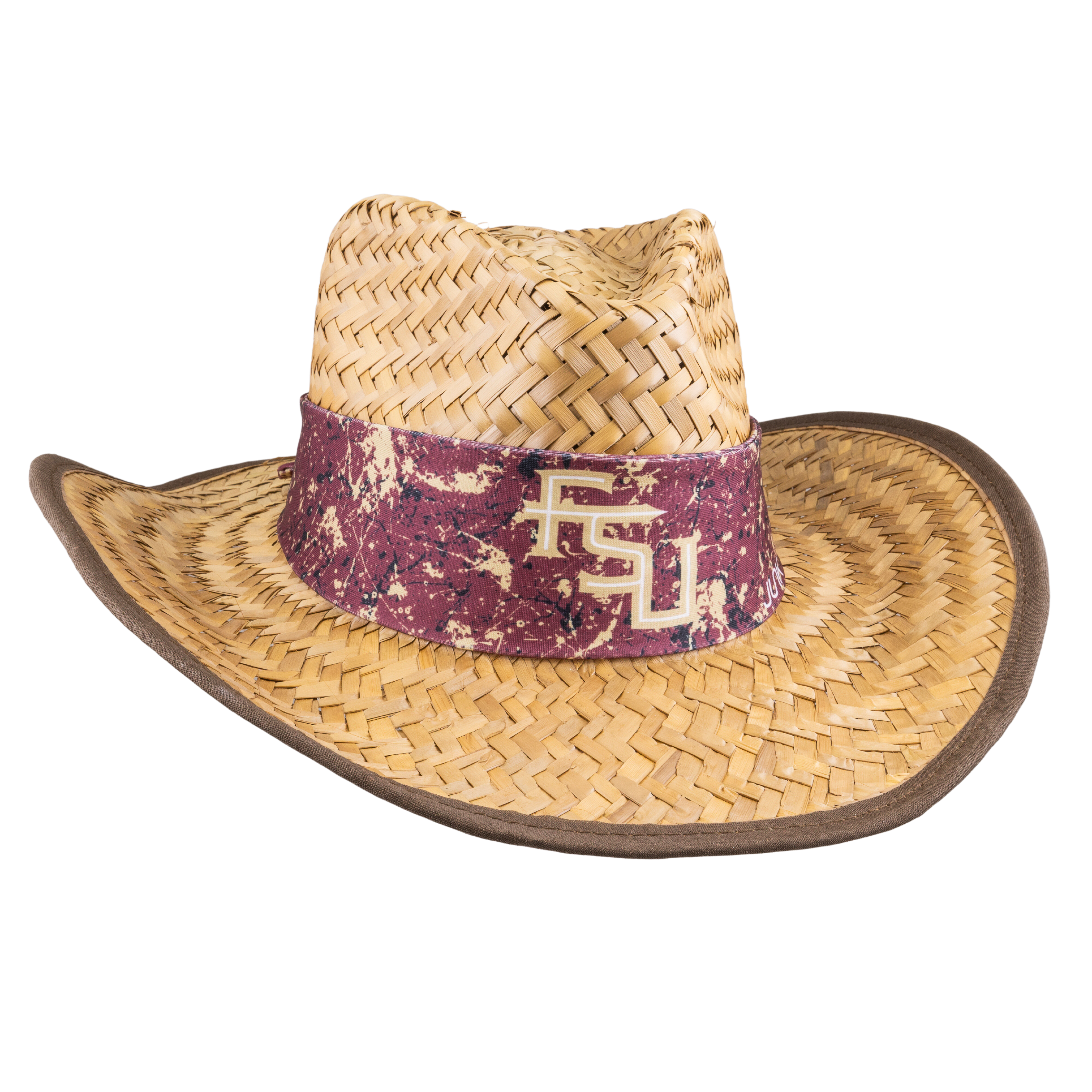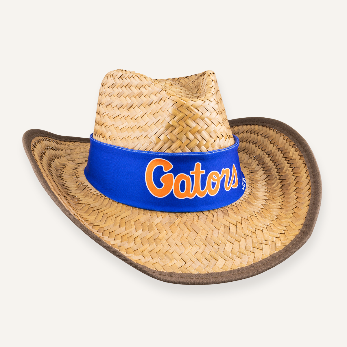Our Campus Collection Flex Tie hat bands feature your school’s colors and logo in brilliant full-color graphics. If your school is not available, email to inquire about availability. You are game day ready with The Campus Collection’s Big Bend Straw Cowboy Hat. Crafted from quality woven palm leaf, this stylish hat features a versatile, shapeable 4” brim. Features: one size fits most, comfortable inner hatband, extra sun protection.