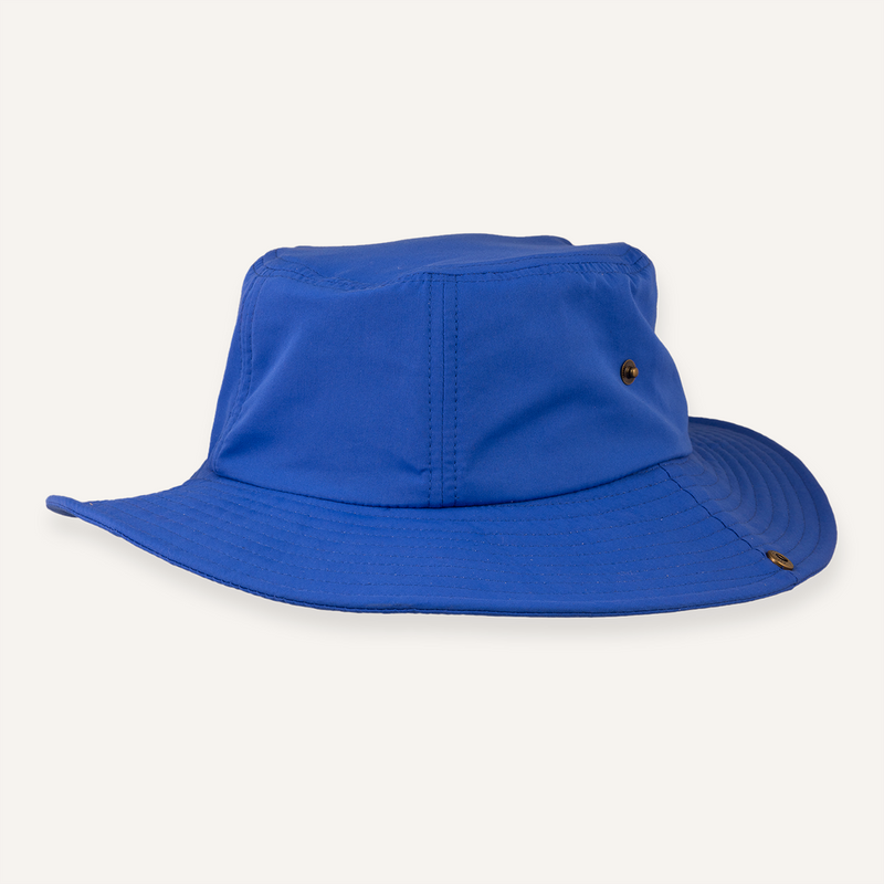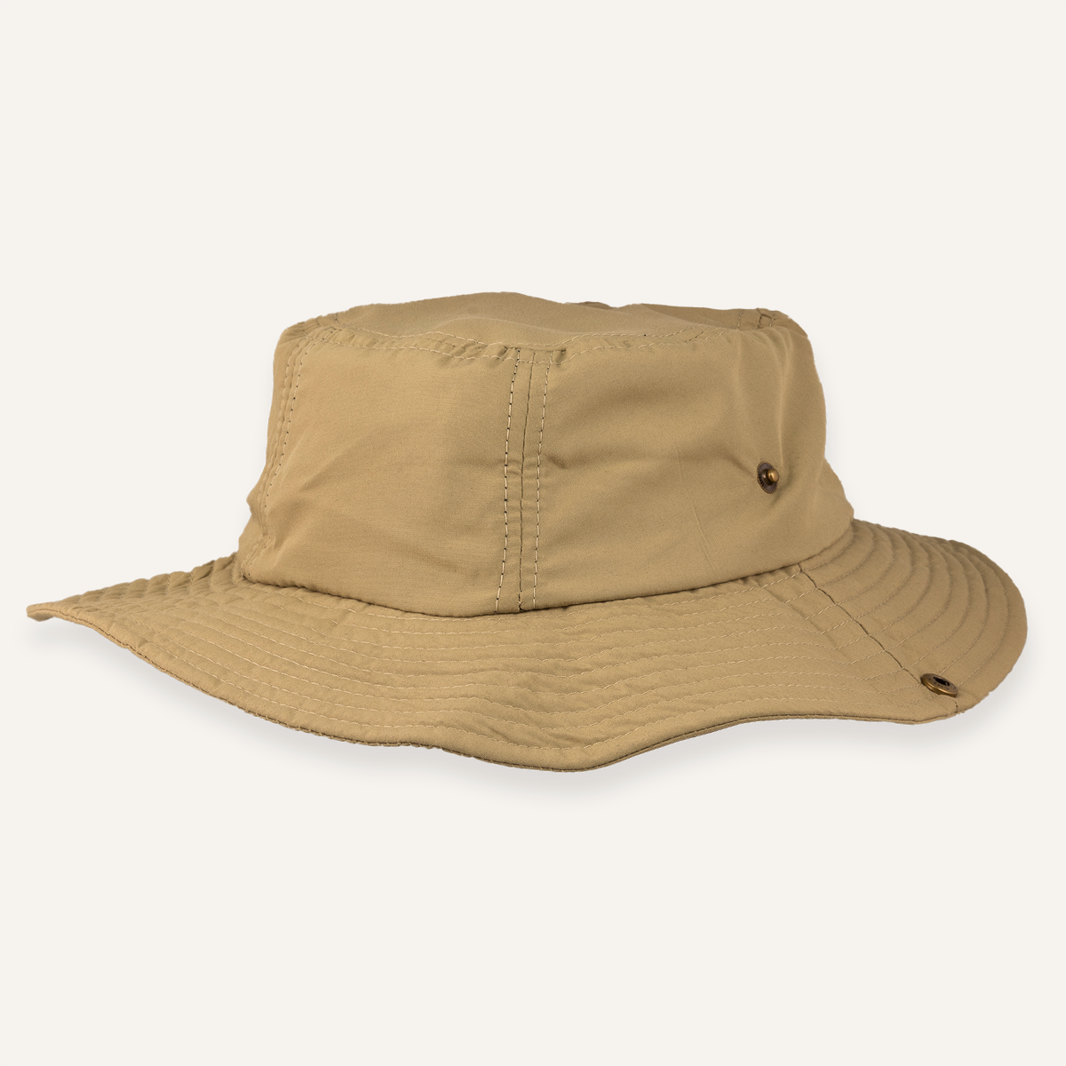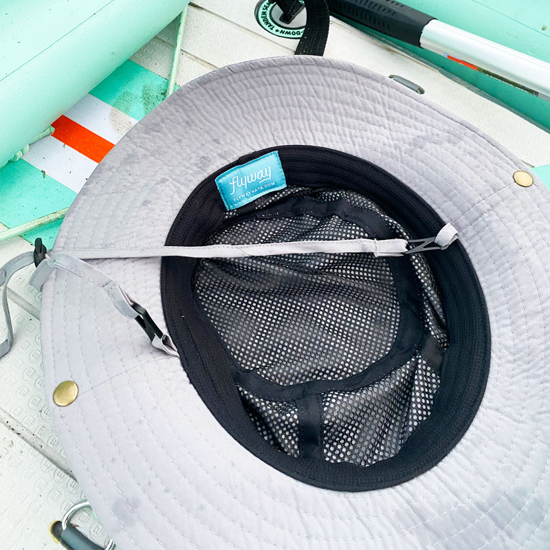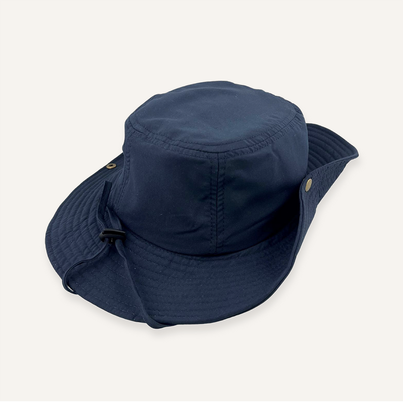 This microfiber Aussie bucket hat with the snap up brim & removable chin strap, will keep you looking stylish on all of your adventures. Comes with mesh inside the crown & a moisture wicking sweatband to keep your eyes dry. One size fits most.
