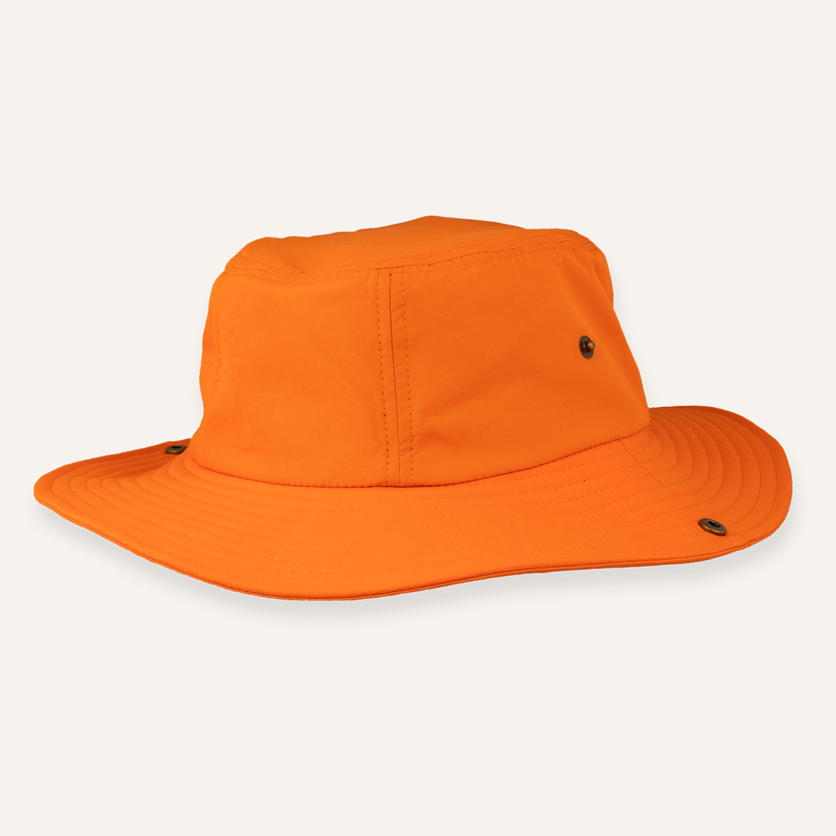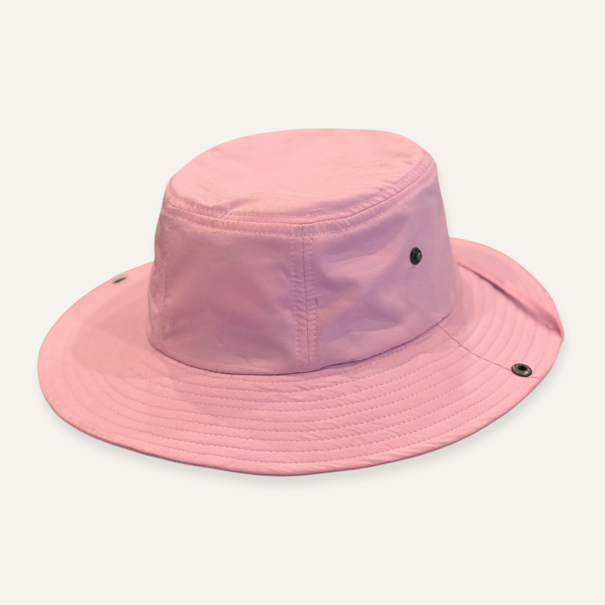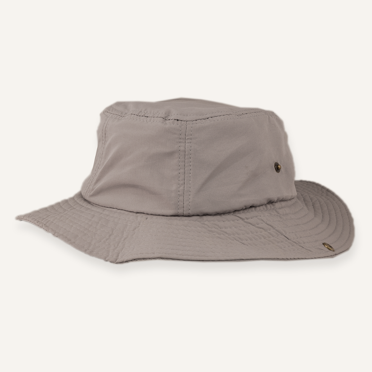 This microfiber Aussie bucket hat with the snap up brim & removable chin strap, will keep you looking stylish on all of your adventures. Comes with mesh inside the crown & a moisture wicking sweatband to keep your eyes dry. One size fits most.