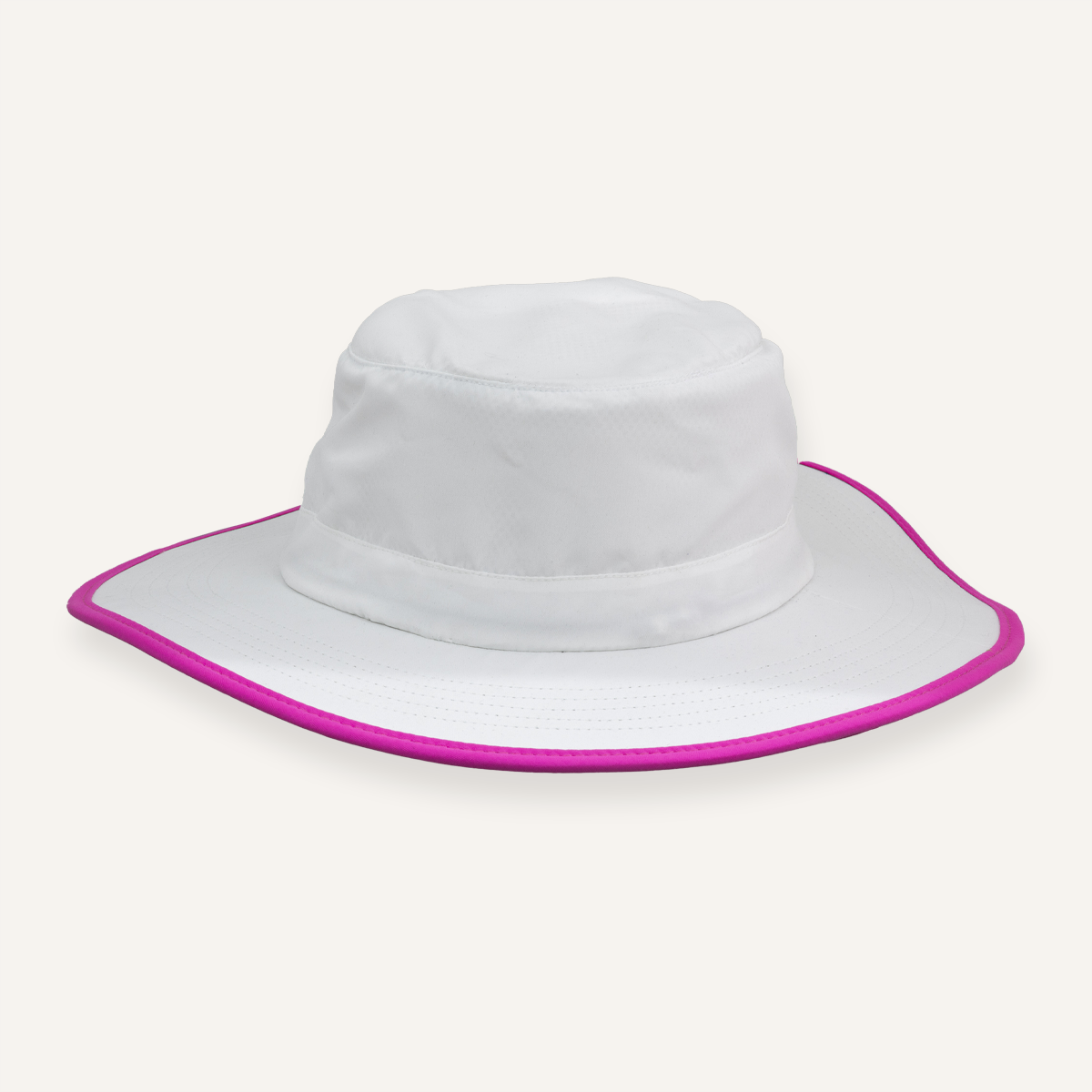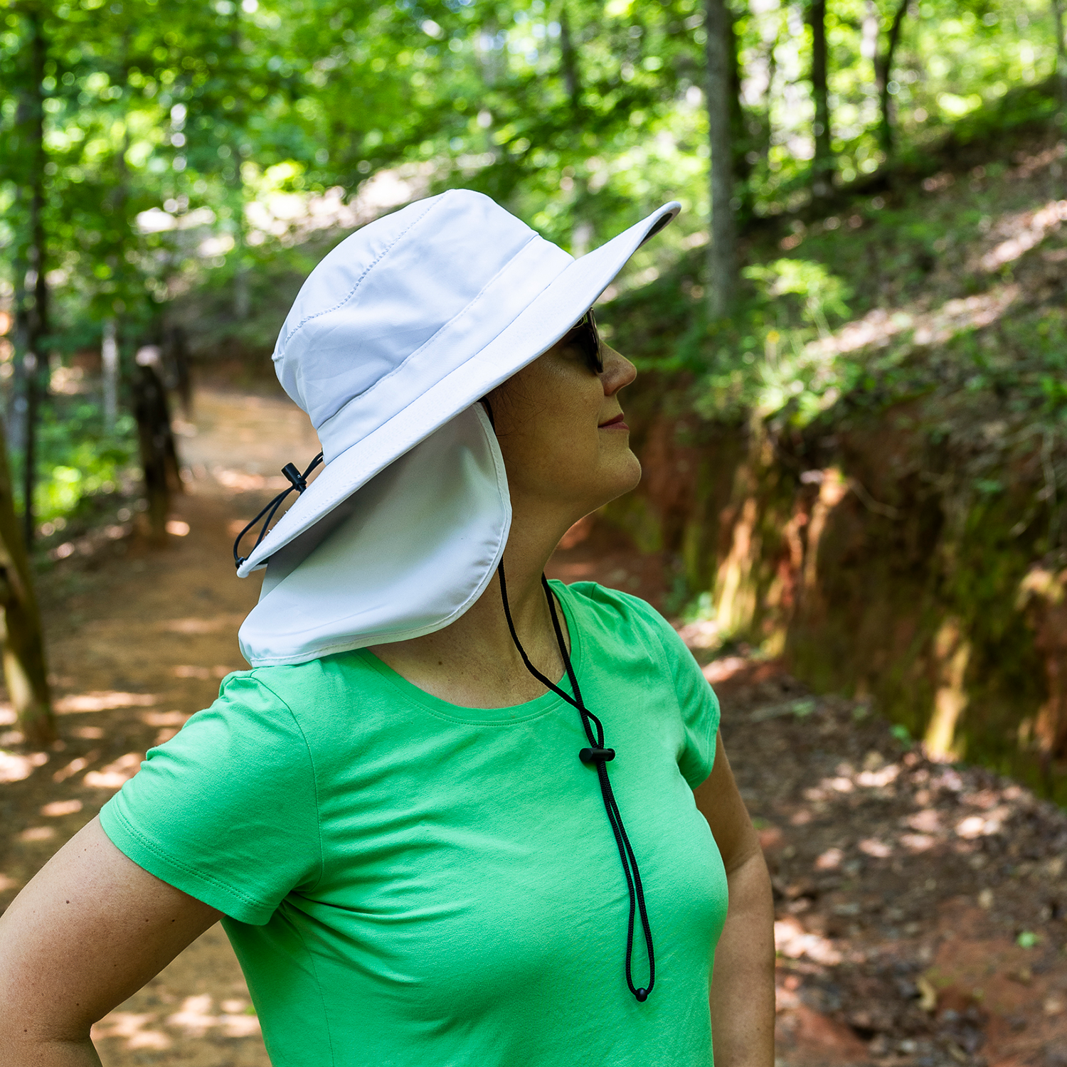Perfect for sunny hot days at the beach, this lightweight microfiber hat has neck flaps that can be tucked into the brim when not needed. Comes with a chinstrap and moisture-wicking sweatband. Available in White. One size fits most with adjustable draw string and quick adjust clip.