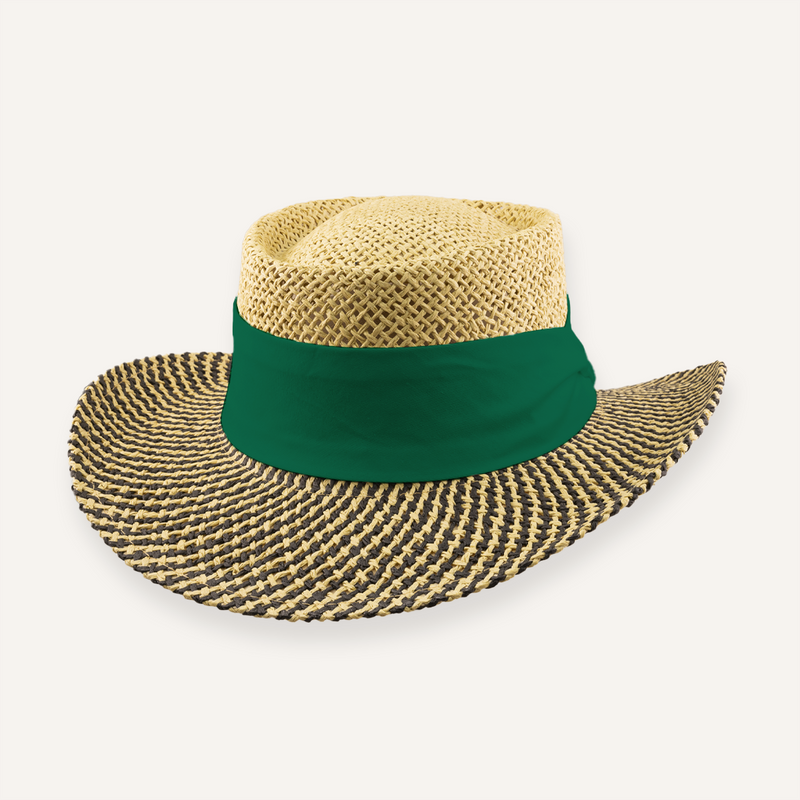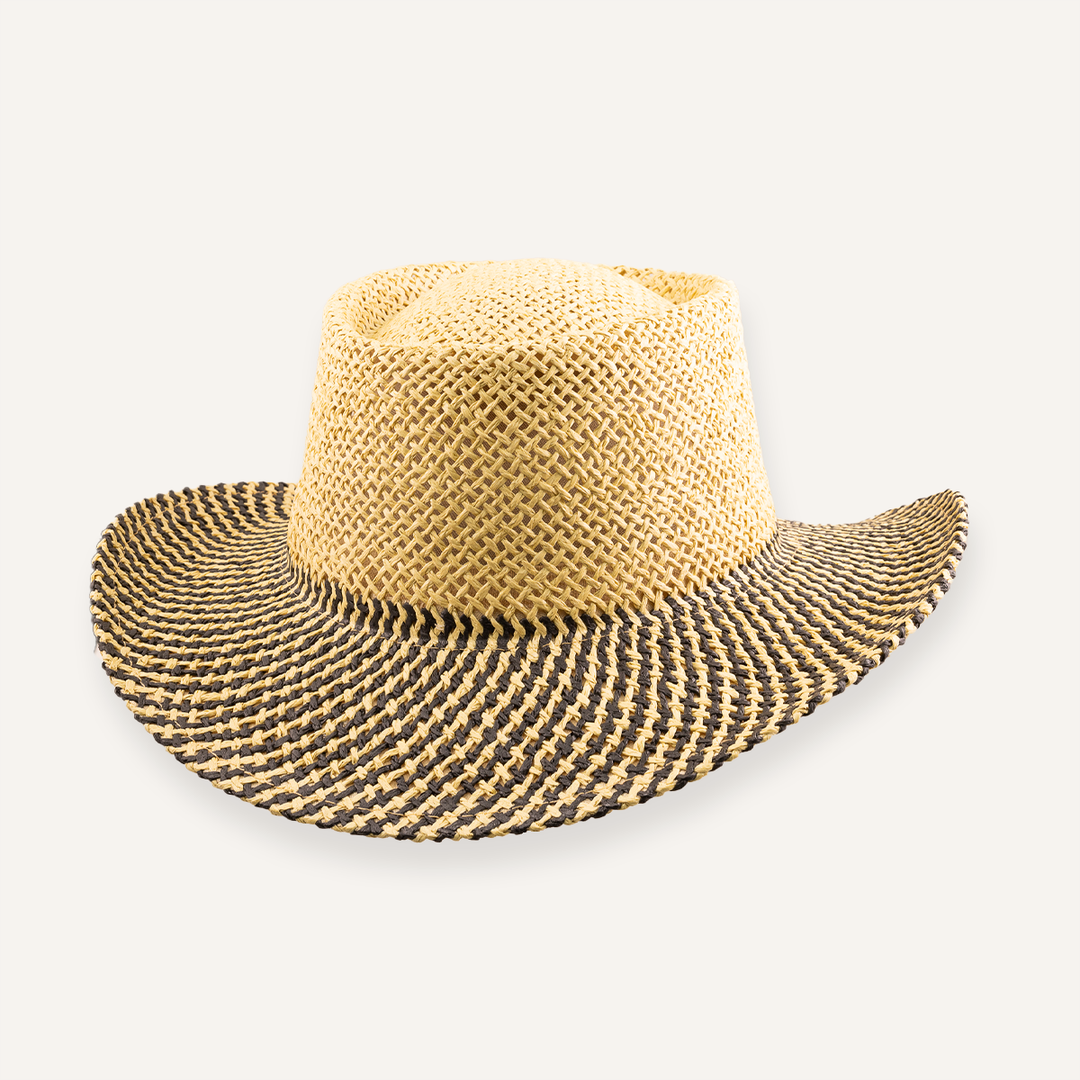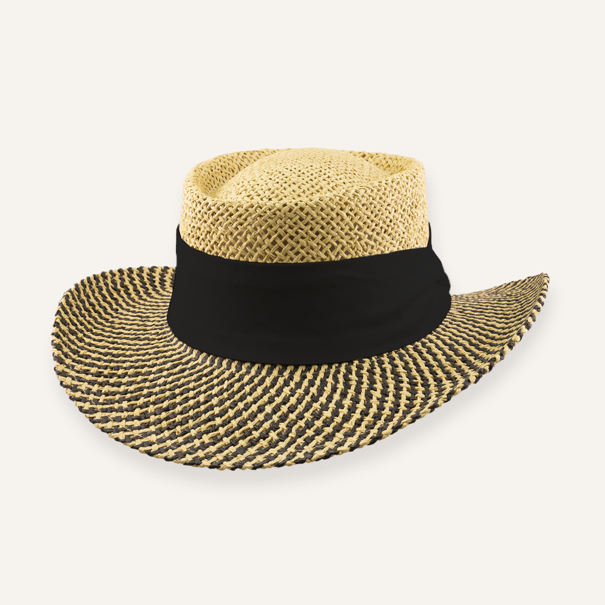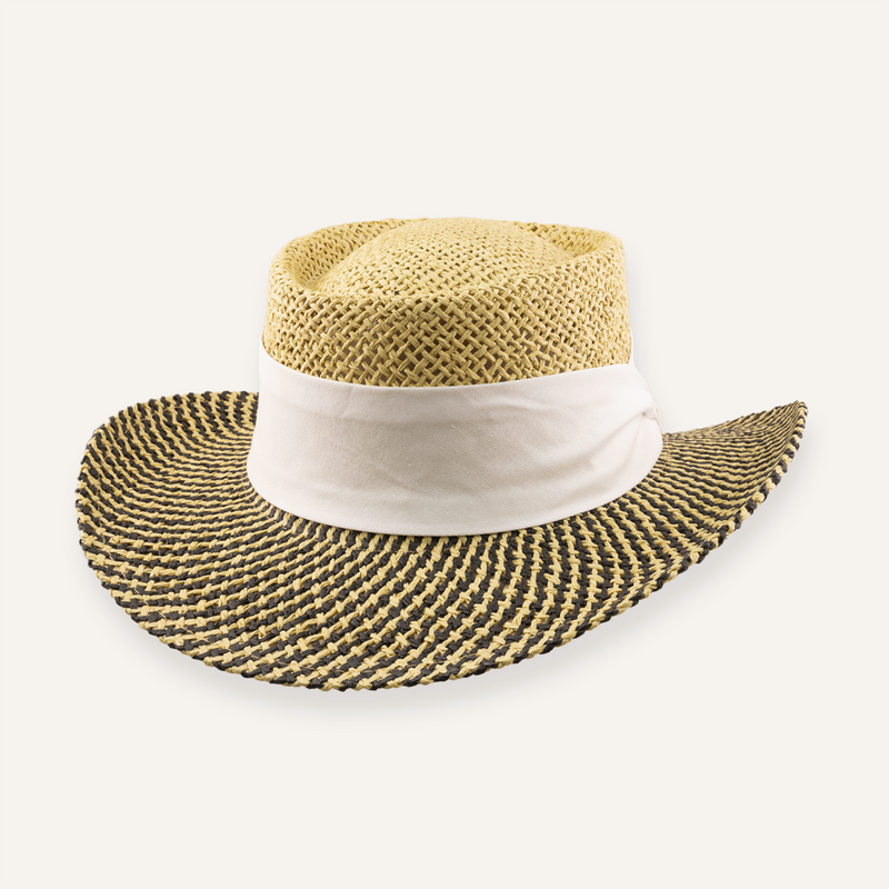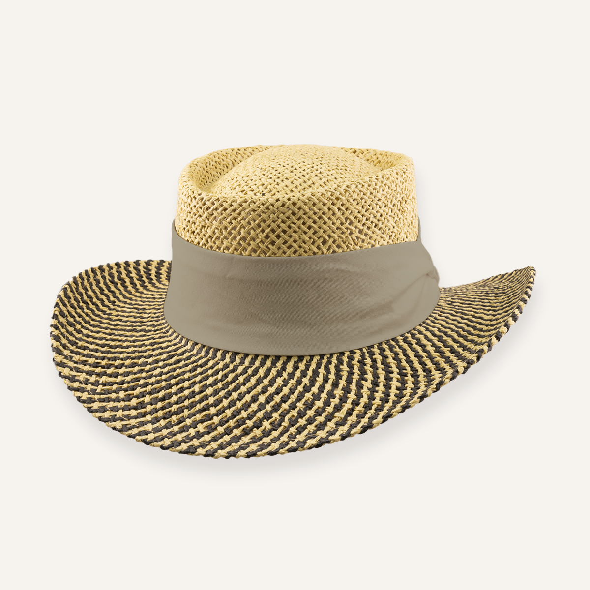 Made from two-toned twisted linen straw, The Two-Tone Gambler features a 3.25 inch brim with sunblock material in the crown and under the brim for extra protection. The oval crown and two tone brim lend this hat an air of sophistication.